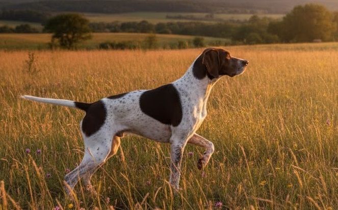 Ce chien est célèbre pour son "arrêt" sculptural : lorsqu'il détecte une odeur d'animal, il se fige instantanément, le corps tendu comme une flèche pointant vers l'objectif, d'où son nom. Son instinct le pousse à galoper à grande vitesse avec une quête très étendue, ce qui témoigne d'une endurance cardio-vasculaire exceptionnelle.