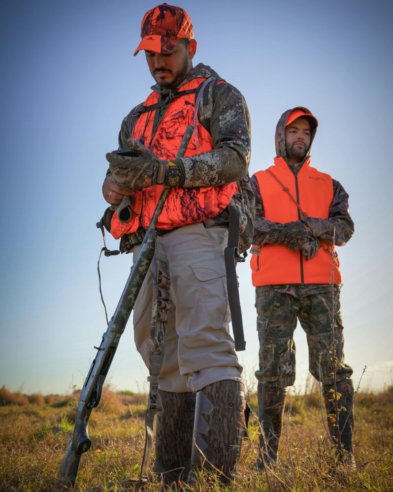 Côté apparence, le contraste est tout aussi parlant : tenue camouflage censée renforcer une image virile, immédiatement contredite par l’inévitable gilet fluorescent orange, imposé pour des raisons de sécurité. Une esthétique paradoxale, entre fantasme de toute-puissance et rappel involontaire du danger réel que représente la chasse.