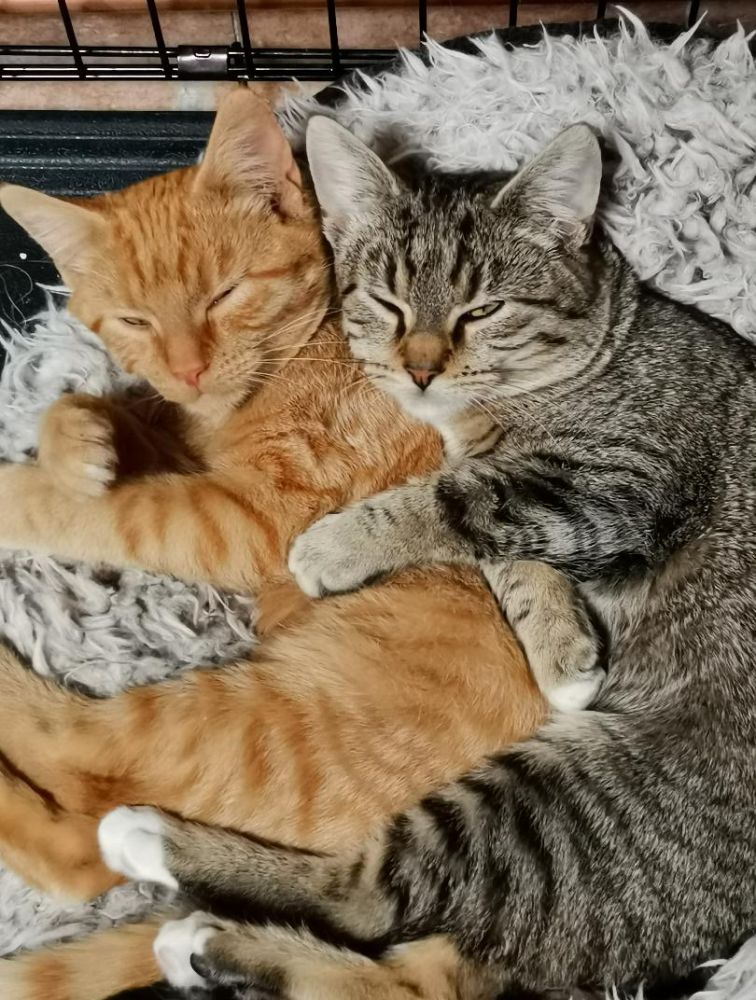 Nous cherchons une famille aimante pour deux adorables frères de 6 mois : Jafar, le tigré gris, et Gaston, le tigré roux.