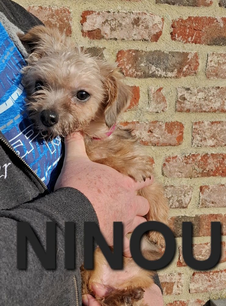 Ninou est une petite chienne très très peureuse mais gentille. Elle a peur de beaucoup de choses. Elle a vécu avec 28 autres chiens dans une maison, elle n a donc pas eu bcp d éducation et n a pas connu grand choses.