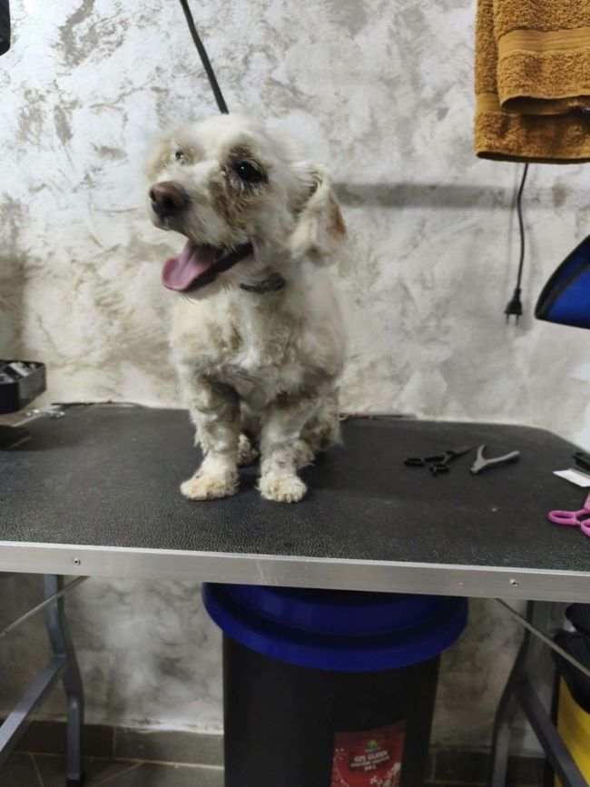 pour aller manger. Il était rachitique et dans un état épouvantable, qu'Aurelia n'a eu d'autre choix que de le tondre.