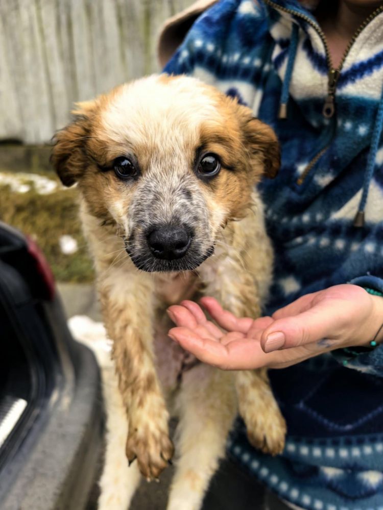 Fin décembre 25, dans un fossé, un villageois trouvait 4 chiots âgés de seulement 4/5 semaines!
