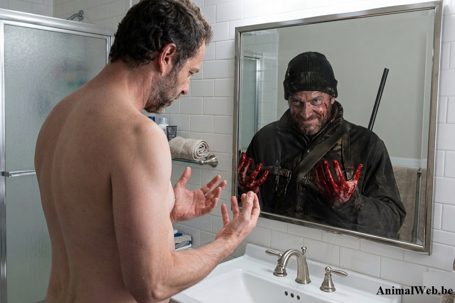 Le miroir est le seul juge qui ne se laisse pas berner par les excuses de "régulation cynégétique". Dans l'intimité d'une salle de bain, seul face à sa propre conscience, le chasseur est confronté à ce qu'il est devenu.